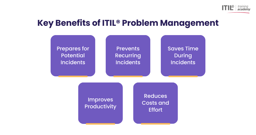 ITIL® Problem Management offers various benefits to help organisations improve service stability and reduce the impact of recurring issues. Let’s explore them below.