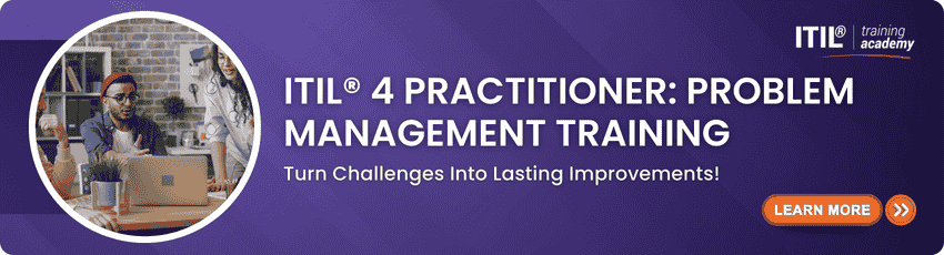 ITIL® Problem Management is integral in helping organisations move beyond the temporary fixes and address the root cause of recurring IT issues. Focusing on why problems occur supports implementing effective solutions for building long-term growth, service stability, and improving IT service performance.